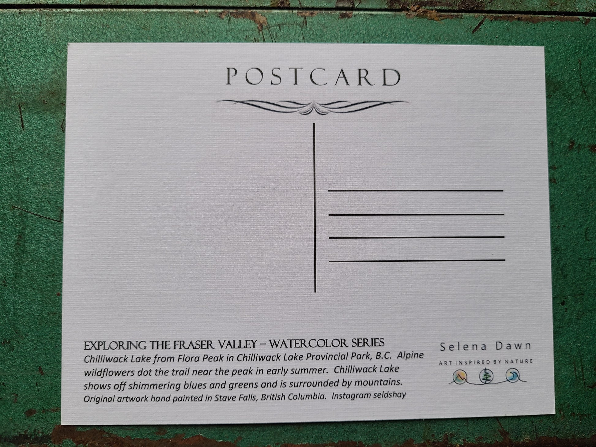 Postcard with my original and hand painted watercolor artwork inspired by places in the Fraser Valley.
