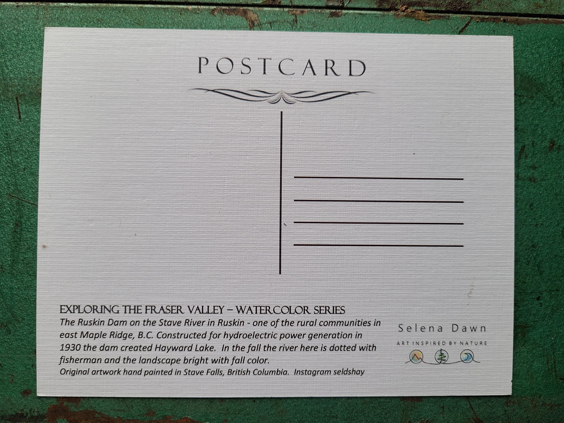 Postcard with my original and hand painted watercolor artwork inspired by places in the Fraser Valley.