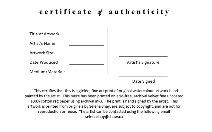 This artwork is printed from originals by Selena Shay, are subject to copyright, and are not for reproduction or reuse.