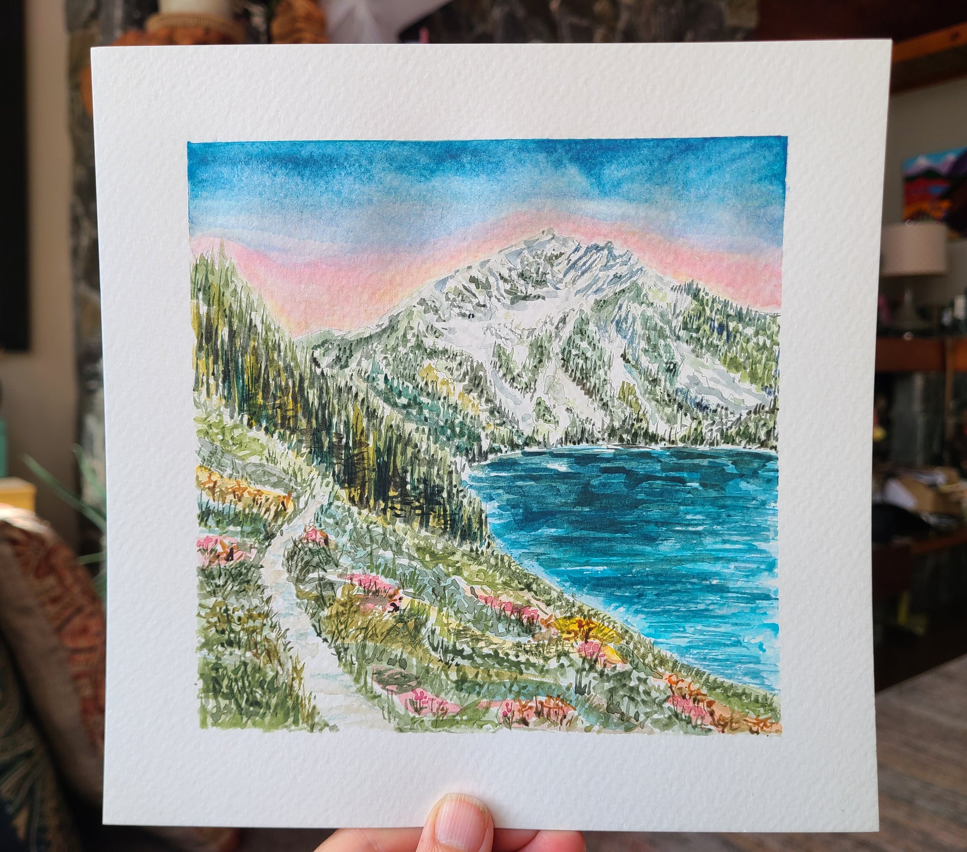 This is a giclee print of my original watercolor Lower Pierce Lake.