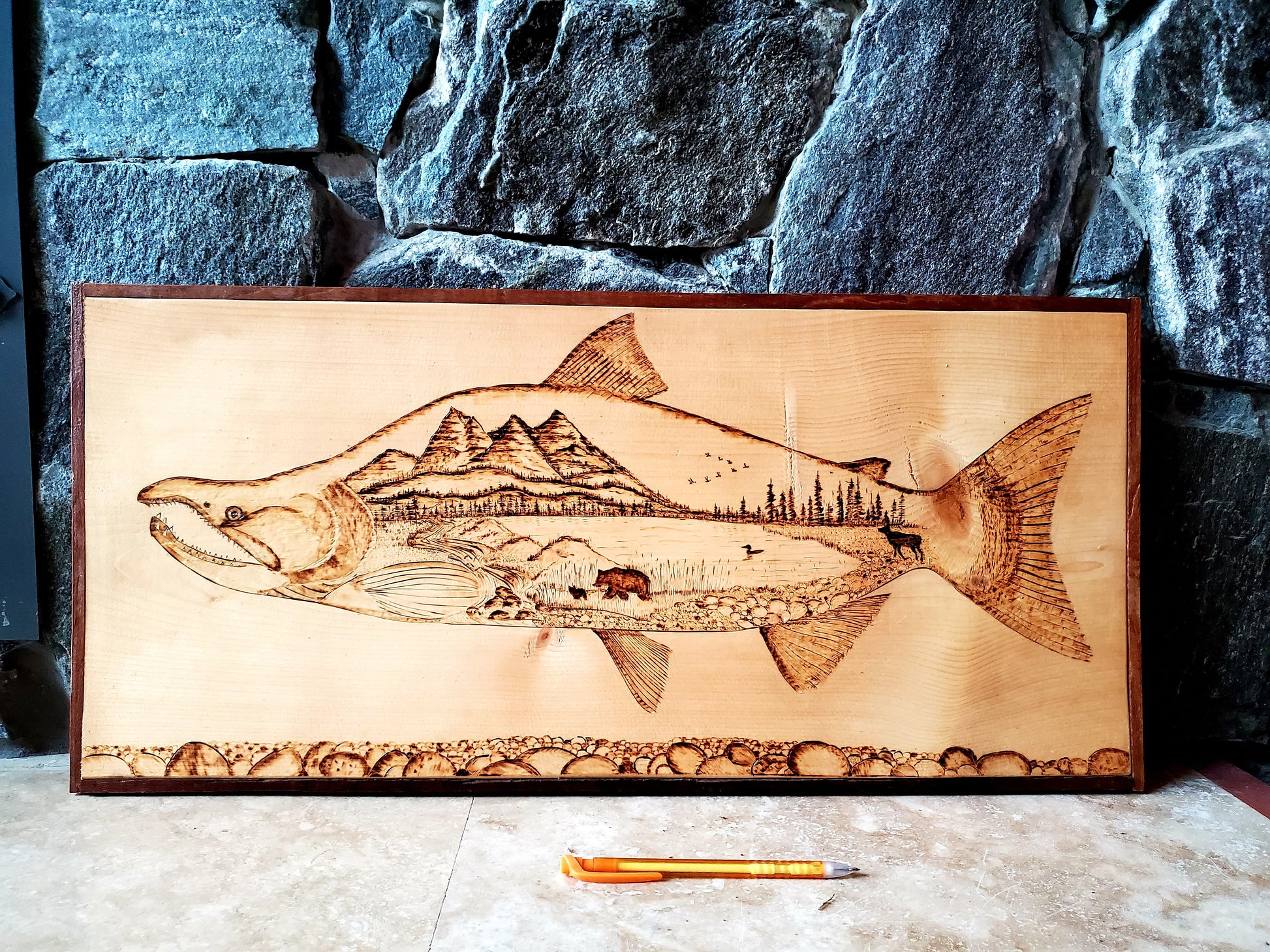Wood burning on Pine - Sockeye Salmon
